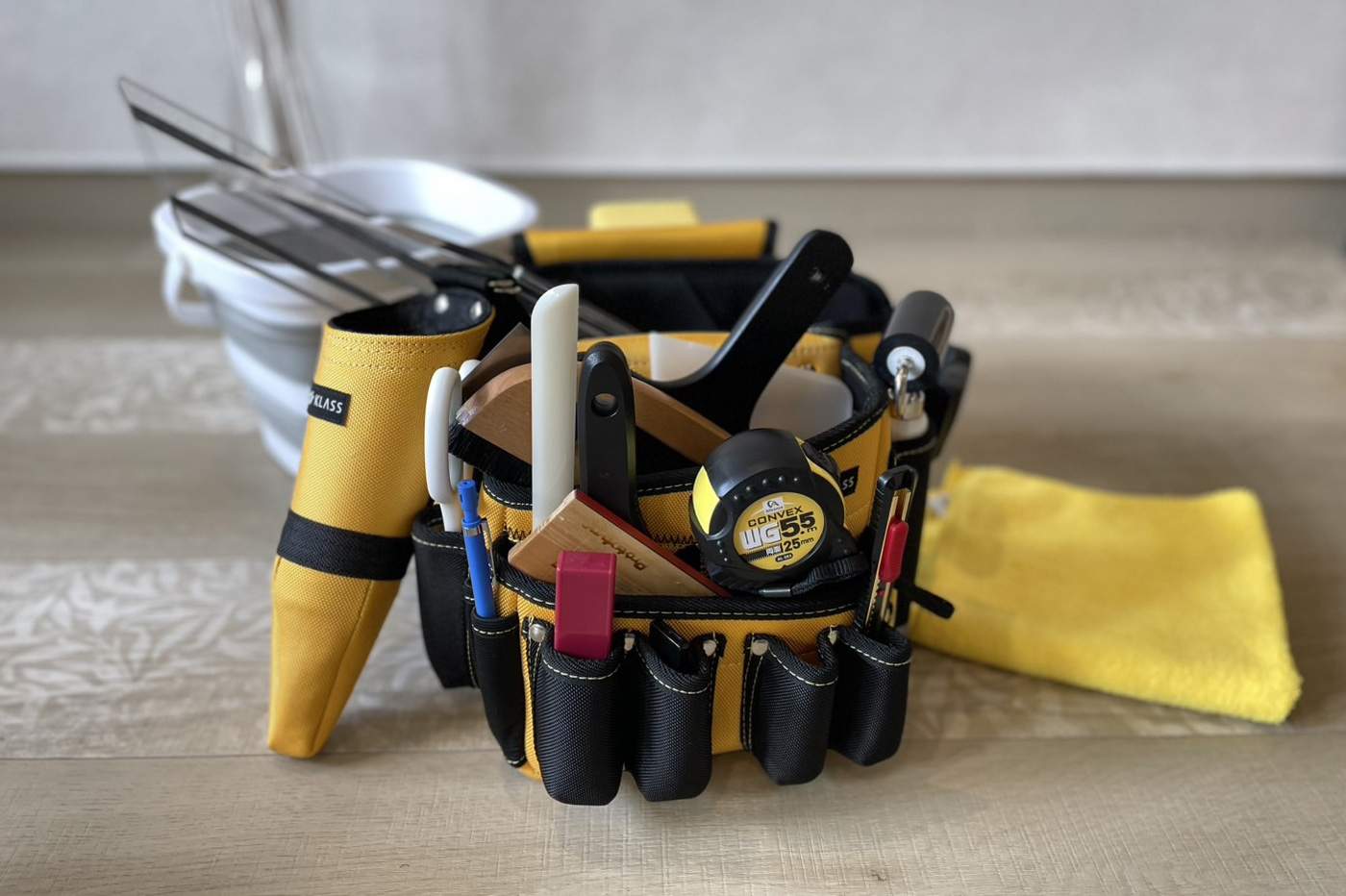 壁紙施工に使う全ての道具はレンタルできるので、脚立・アルミ伸縮足場板・職人厳選のプロ用壁紙貼り道具等を
